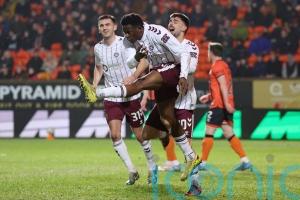 Landry Kabore scored a double as William Hill Premiership leaders Hearts cranked up the pressure on title rivals Rangers and Celtic by easing to a 3-0 away win over nine-man Dundee United. The Jambos struck early through Kabore and then doubled their lead with an Alexandros Kyziridis penalty shortly...